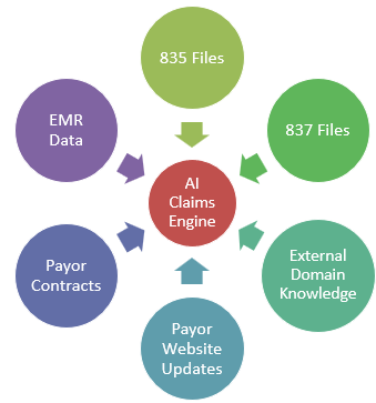 Using AI and Automation the AI Engine can provide real time feedback as to the health of a Claim being submitted or appealed. Both public and private Payor are continuously changing their coverages. The AI Engine is updated with any downgrades of CPT codes or plan changes. In addition, it continues to refresh its data sources so trends can be identified and put in the hands of the team who are submitting these claims.